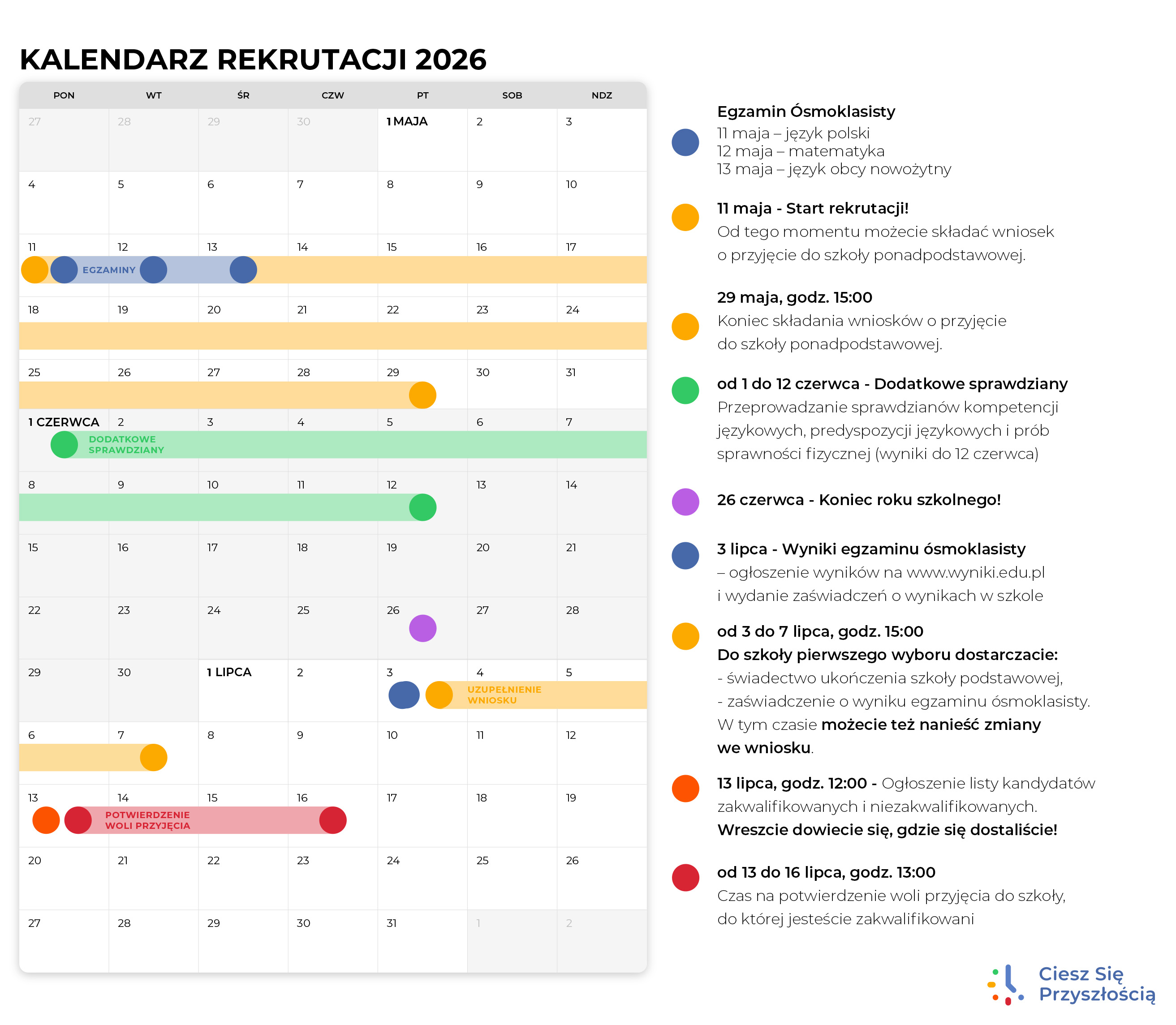 🗓️ Tu znajdziesz dokładne terminy rekrutacji do szkół ponadpodstawowych na rok szkolny 2026/2027 dla poszczególnych województw:
